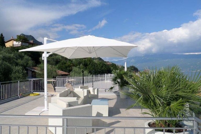 60 qm große Dachterrasse mit herrlichem Blick über den Gardasee. Die Einrichtung ist modern und komfortabel.