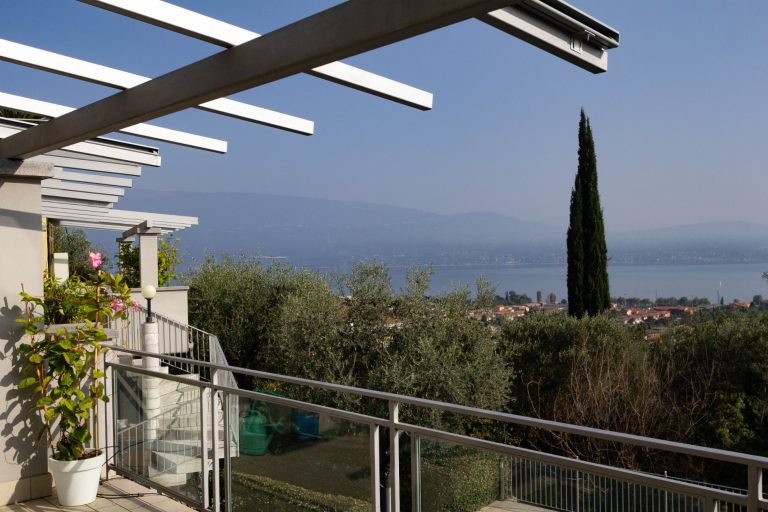 Die Aussicht von Giardini di Vigna ist spektakulär. Der Blick reicht vom Massiv des Monte Baldo und den gegenüberliegenden Uferorten auf den Gardasee bis hin zur Isola Garda, dem Rocca di Manerba und der Halbinsel von Sirmione.