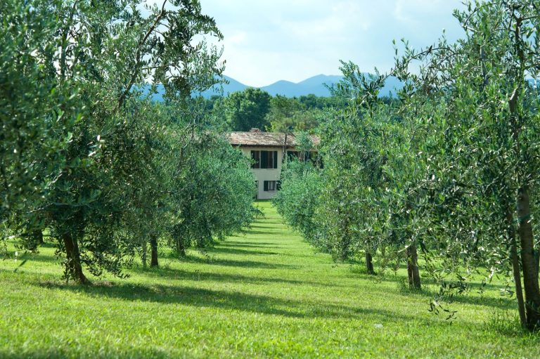 Zwischen den sanften Hügeln am westlichen Gardaseeufer, dem "Valtenesi" Gebiet, liegt das Anwesen inmitten einer Vielzahl von Oliven- und Obstbäumen.