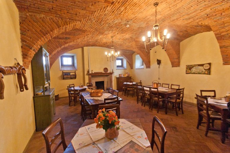 Sie können zwischen Übernachtung mit Frühstück und Halbpension wählen. Der stimmungsvolle Speisesaal ist ein altes Gewölbe aus Backstein mit Kamin. Bei schönem Wetter können die Mahlzeiten im Schatten des weiten Säulengangs eingenommen werden. Im Steinkeller werden Weinverkostungen angeboten. Die sehr gute traditionelle lombardische Küche verwendet lokale Produkte vom Hof.