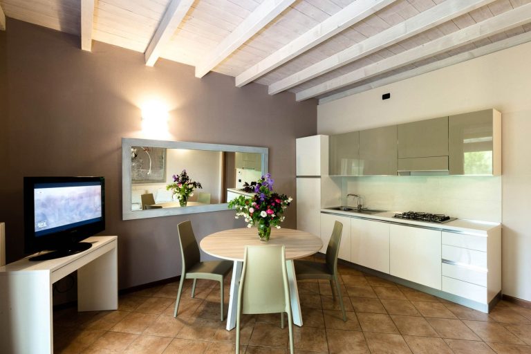 Es gibt Appartements mit einem oder zwei Schlafzimmern und einer Größe zwischen 60 und 75 qm für 2-5 Personen.