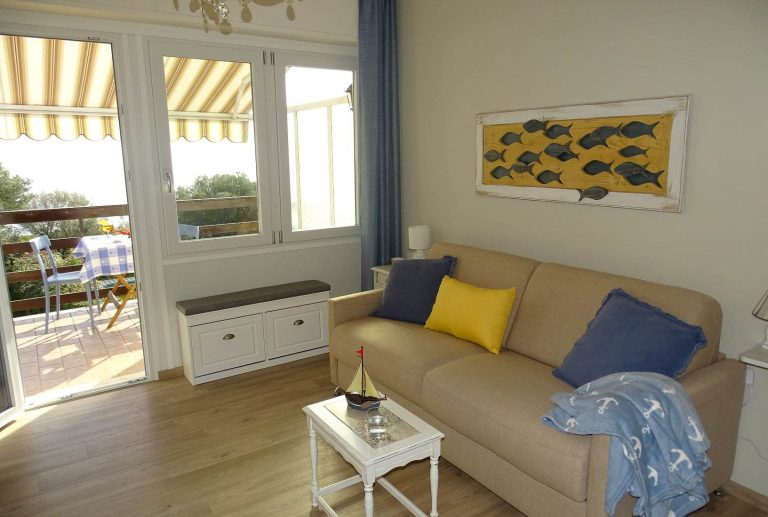 Die helle und gemütliche Studio mit 35 qm verfügt über einen Wohn-Schlafraum mit bequemem Sofa-Bett (160x195) und einem großen Kleiderschrank. Die Küchenzeile ist mit Herd, Kühlschrank, Spülmaschine und Mikrowelle ausgestattet. Das Badezimmer hat eine Dusche, WC, Waschtisch und Fön.