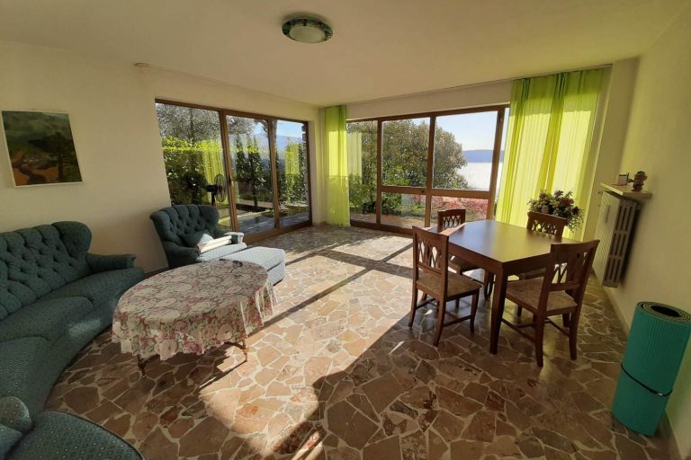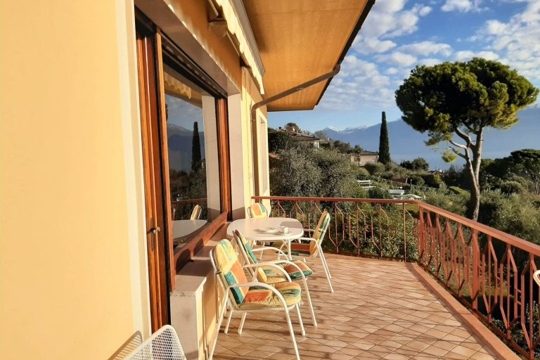 Die in den 60er Jahren erbaute gepflegte italienische Villa liegt in traumhafter Hanglage in einem großen Garten etwas oberhalb des Gardasees im Ortsteil Maclino. Sowohl vom Wohnzimmer, dem Hauptschlafzimmer und dem großen Balkon hat man hier einen grandiosen Blick über den See. Dieser reicht in nördliche Richtung bis zum Monte Baldo und in südliche Richtung bis weit über die Isola del Garda und Sirmione.