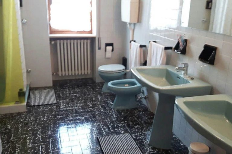 Das große Bad verfügt über eine geräumige Dusche, WC, Bidet, 2 Waschbecken und eine Waschmaschine.
