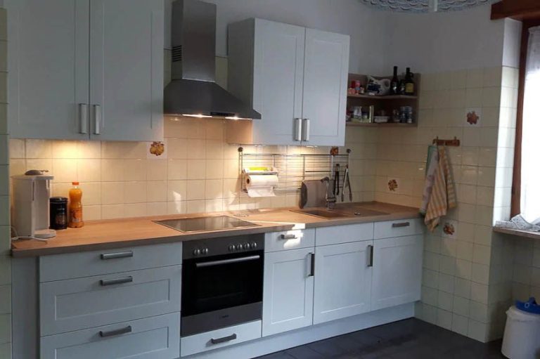 Die moderne Anbauküche verfügt über Mikrowelle,