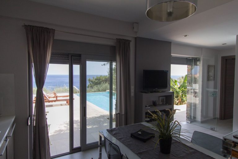 Das freistehende und ebenerdige Haus bietet einen sehr schönen Meerblick und einen privaten Infinitypool mit natürlichem Salz.