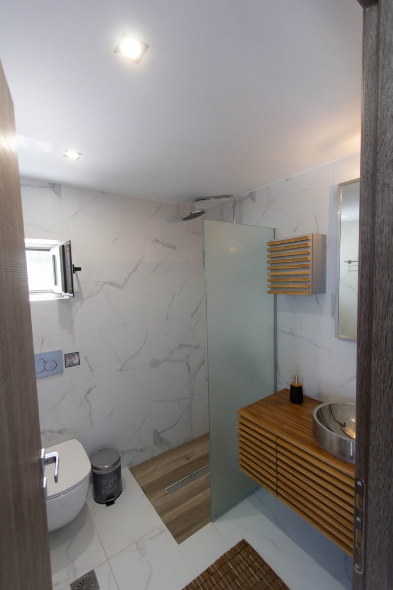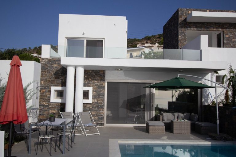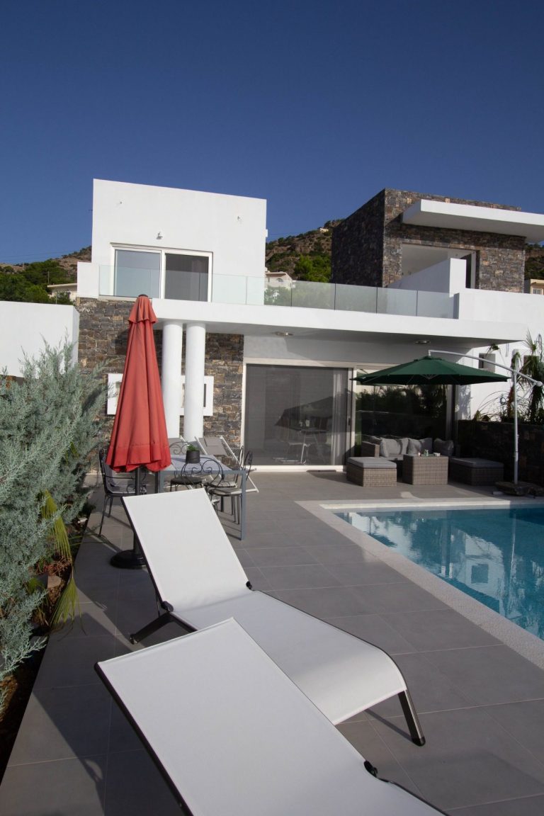 Das Haus mit privatem modernem Salzwasserpool hat etwa 70 qm Wohnfläche, einem zauberhaften Meerblick, eine Terrasse mit Sitzgelegenheiten, Sonnenliegen und Sonnenschirm und außerdem eine Dachterrasse.