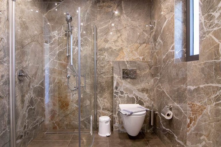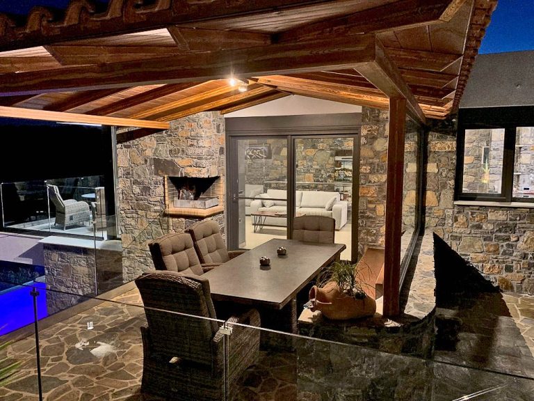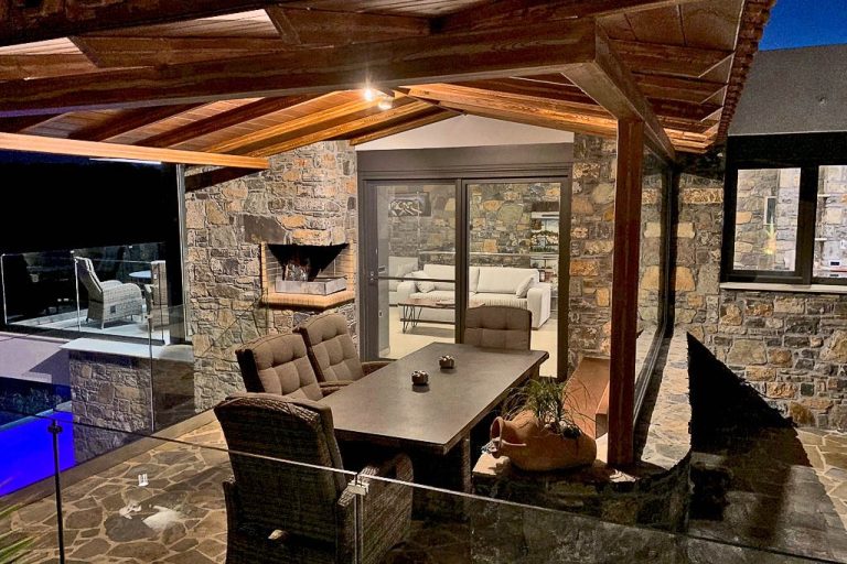 Alle Zimmer haben außerdem eine eigene Terrasse und im Wohnzimmer gibt es einen offenen Kamin.
