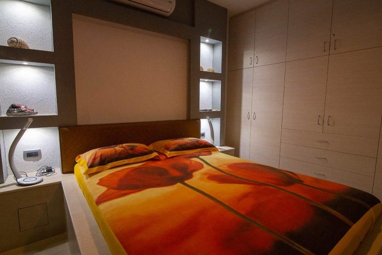 Die Schlafzimmer bieten Einbauschränke und sind mit hellen modernen Möbeln ausgestattet.